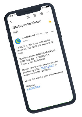 Once you renewed with us, you will get sms (sample) and email (sample) reminder one month before your SSM expiry date. It's NEW. No more worries forgot expiry date.